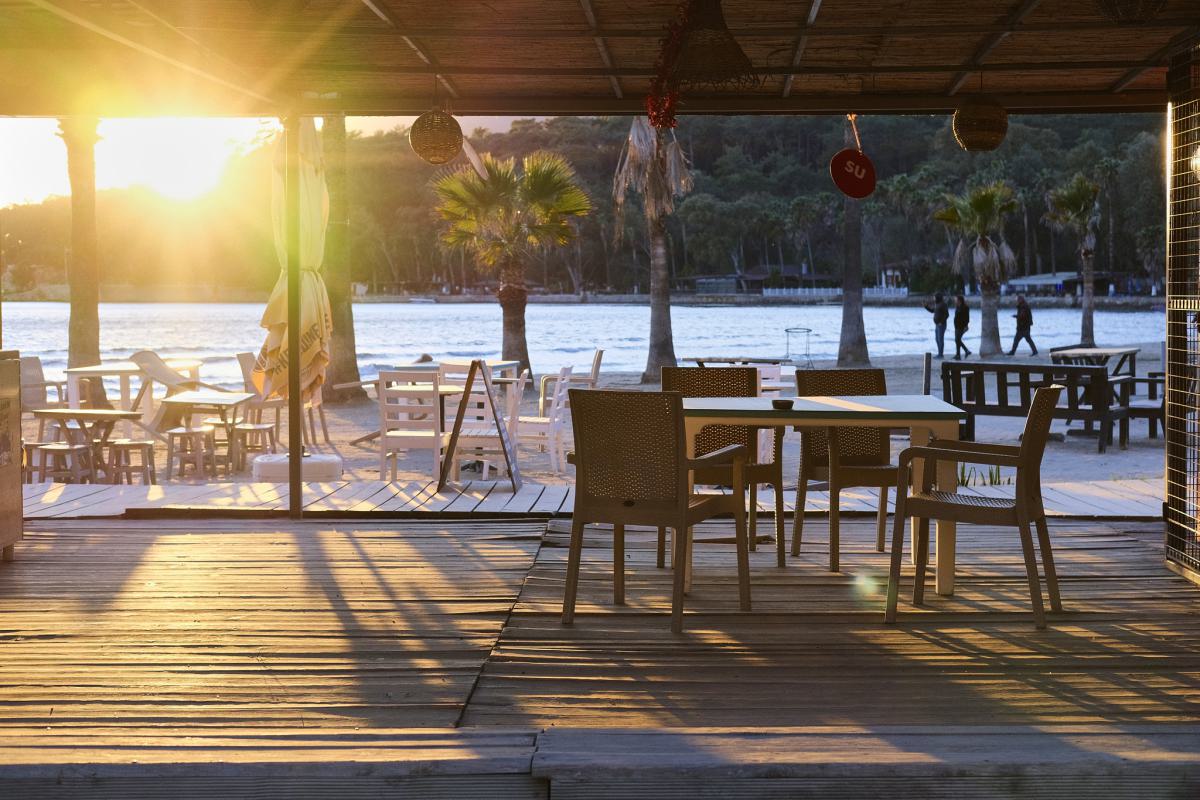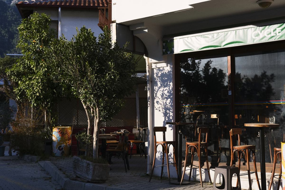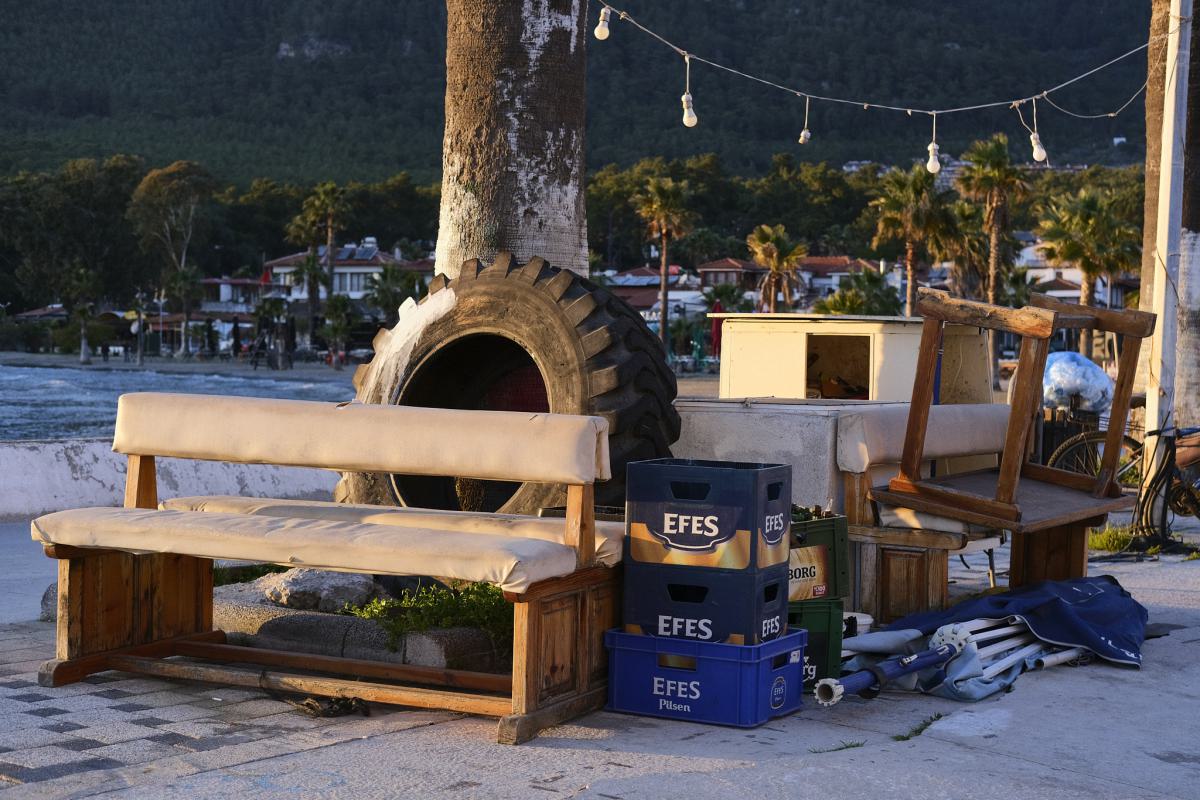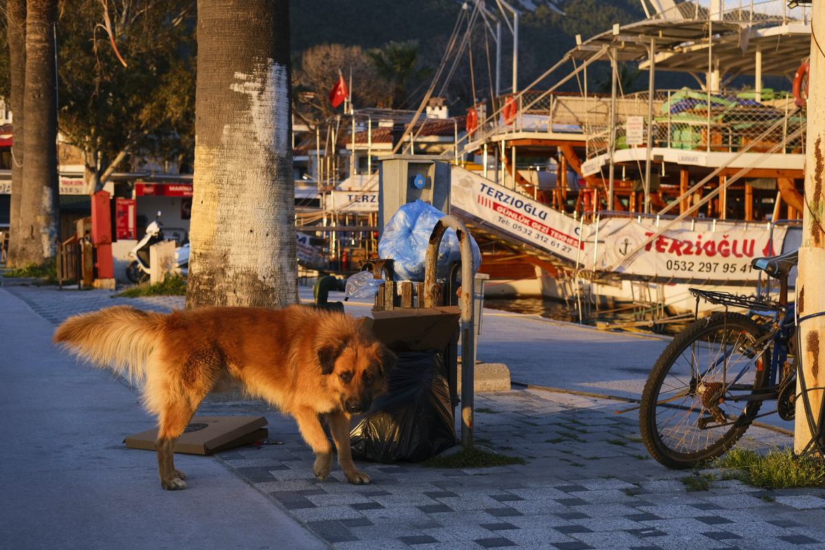 We continue southwards and stop briefly in Milas to buy some excellent fresh fruit and vegetables at the weekly market. Leaving Bodrum to the right, we now head up through the rugged mountains and back down to the coast, where we find a nice pitch near Ören, again by the sea. Unfortunately, the wind has picked up a lot these days (gusts of up to 60 km/h according to the app) and it has also become noticeably cooler. We somewhat regret having mothballed our thick blankets and clothes, but solve this inconvenience with a (reasonably prized) hotel stay in the nearby tourist town of Akyaka, which is not yet very busy at this time of year. After seven days without a hot shower (only the sea and beach showers…), this feels like pure luxury and reminds us once again how valuable hot running water, always available electricity from the socket and the security of four walls and a lockable door are, which we so often take for granted in everyday life, or even ignore.