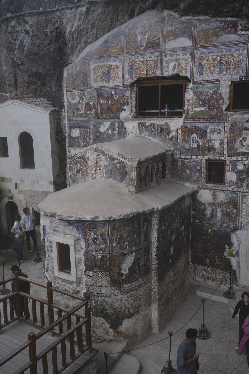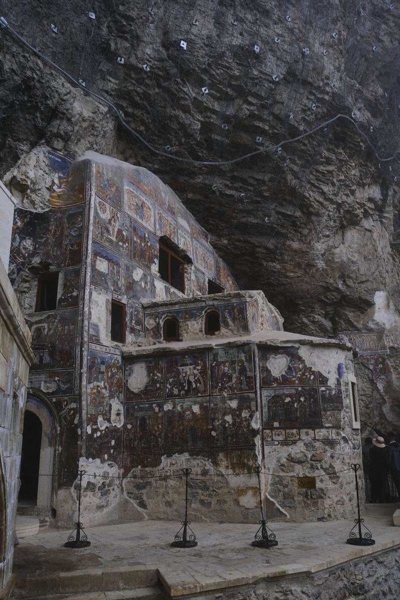 The Sumela Monastery is a historic Greek Orthodox monastery dedicated to the Virgin Mary. Founded in the late 4th century, it is attributed to two Athenian monks, Barnabas and Sophronius, who, according to tradition, discovered an icon of the Virgin painted by the Apostle Luke in a nearby cave. The monastery gained prominence during the Byzantine and later the Empire of Trebizond periods, receiving imperial patronage and undergoing significant expansion in the 13th century. After the Ottoman conquest in the 15th century, it retained a degree of autonomy and remained an active monastic center until its abandonment in 1923 following the population exchange between Greece and Turkey.