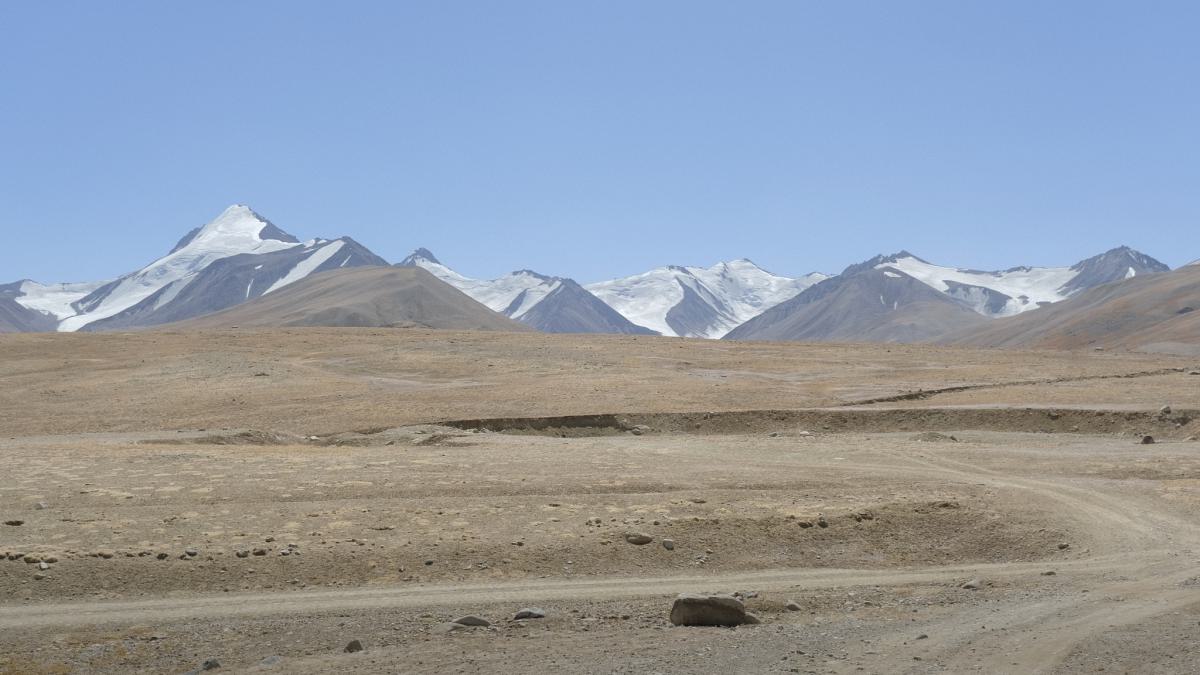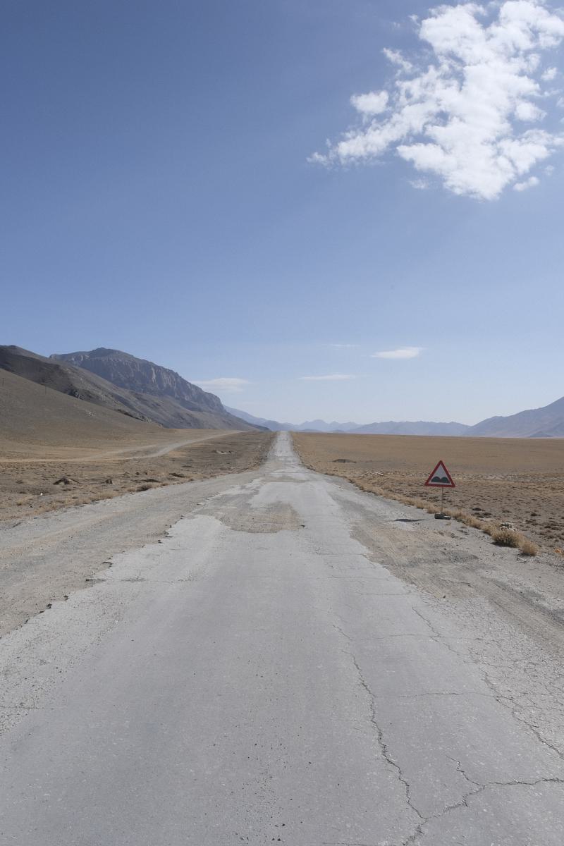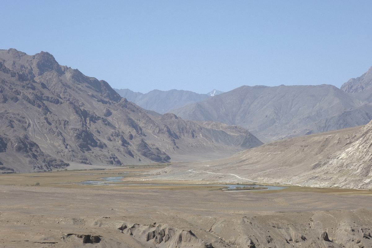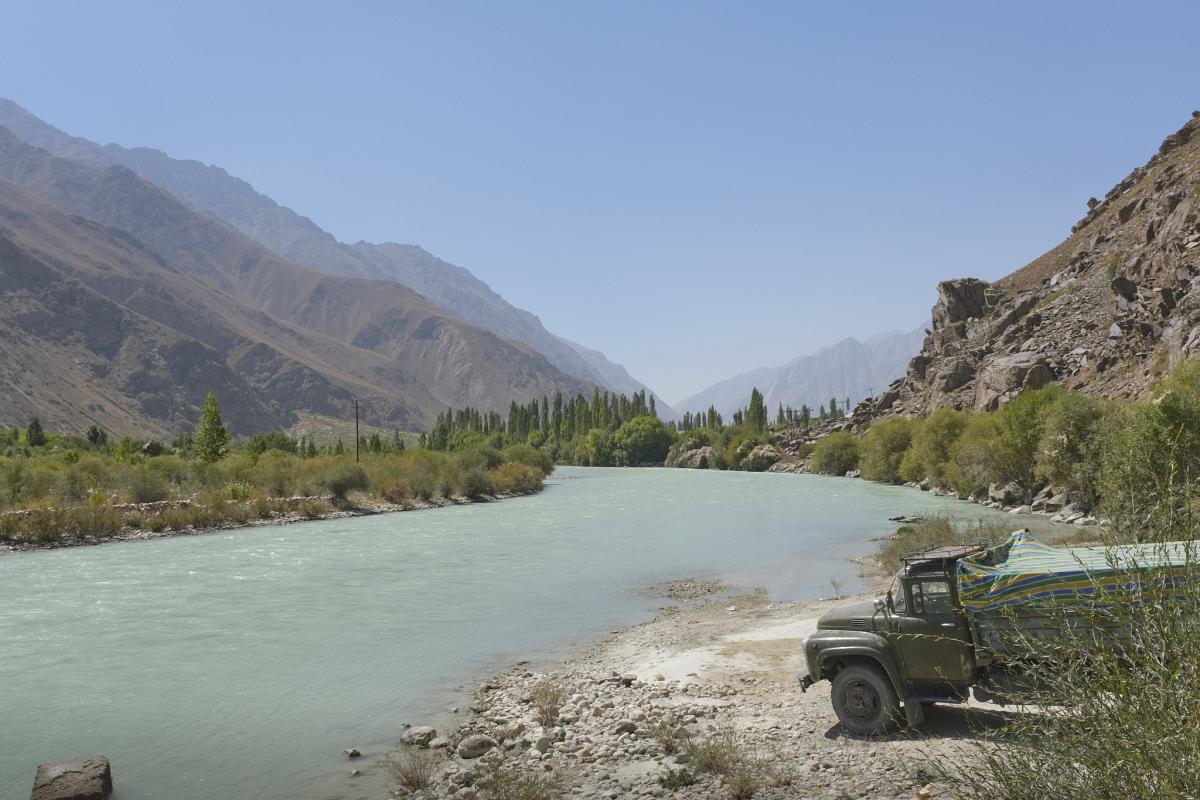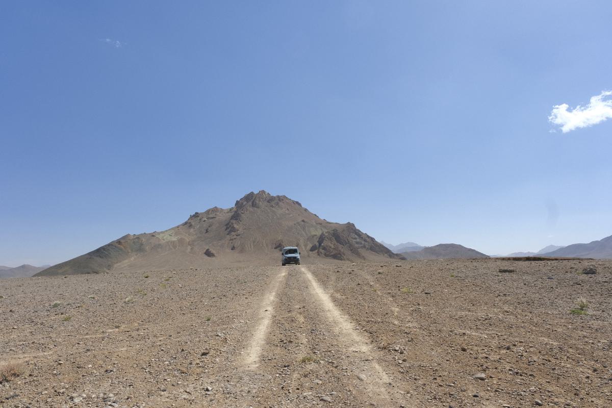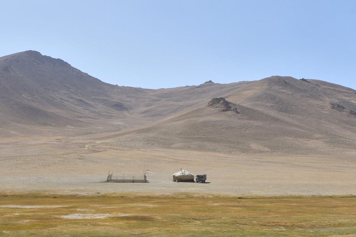 Our struggles with the van contrast with the grandeur of the surrounding landscape. At Chorugh, we left the road and followed the Panj River, heading straight east through the rugged, desolate Pamir Mountains. The landscape is arid and empty. After the small village of Alichur, the terrain becomes flatter again and the Pamir Highway crosses a wide basin at an altitude of around 3,900 metres.