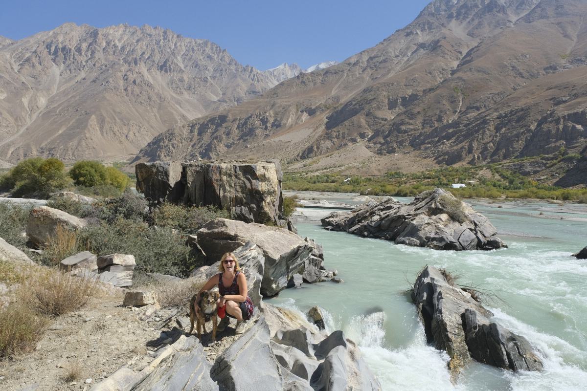 After the high we felt when we arrived at our last stop, we had one of the worst days of the entire journey on the next stretch to the capital of the Pamirs, Chorugh. The road conditions were absolutely awful, and we could only make very slow progress as we navigated the huge potholes, which covered most of the road. During one evasive manoeuvre on a particularly bad stretch, I veered onto the left side of the road, which dropped off about 30 metres into the Panj River — of course, there were no crash barriers. Assuming that nobody would overtake me on the right on this road, I pulled back into the right-hand lane — and then, suddenly, an idiot tourist in a rented Toyota Land Cruiser crashed into the right-hand side of our van. Fortunately, we were both travelling slowly enough to stop quickly. Thankfully, nobody was hurt, although we were really shocked when we saw how badly damaged our van was, and realised how easily the crash could have resulted in both cars falling into the river many metres below.