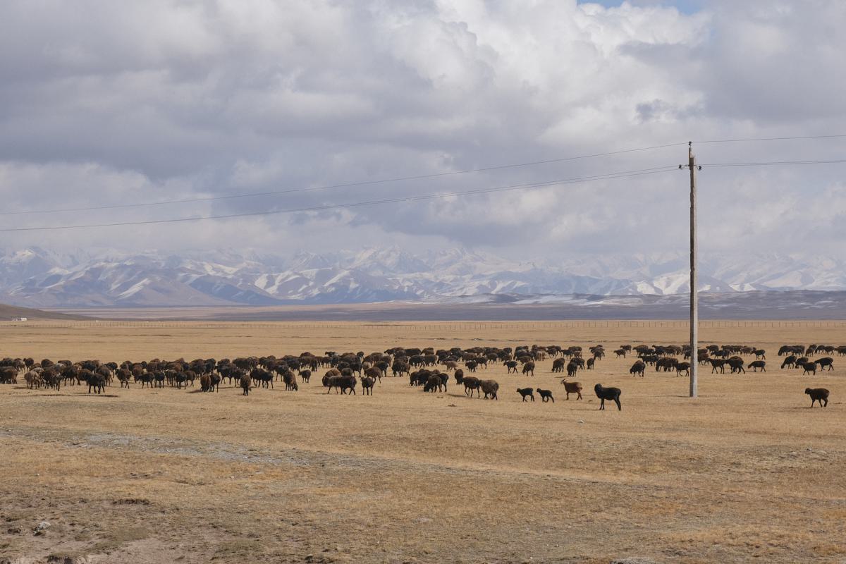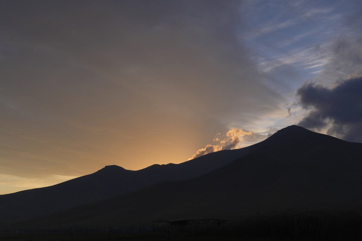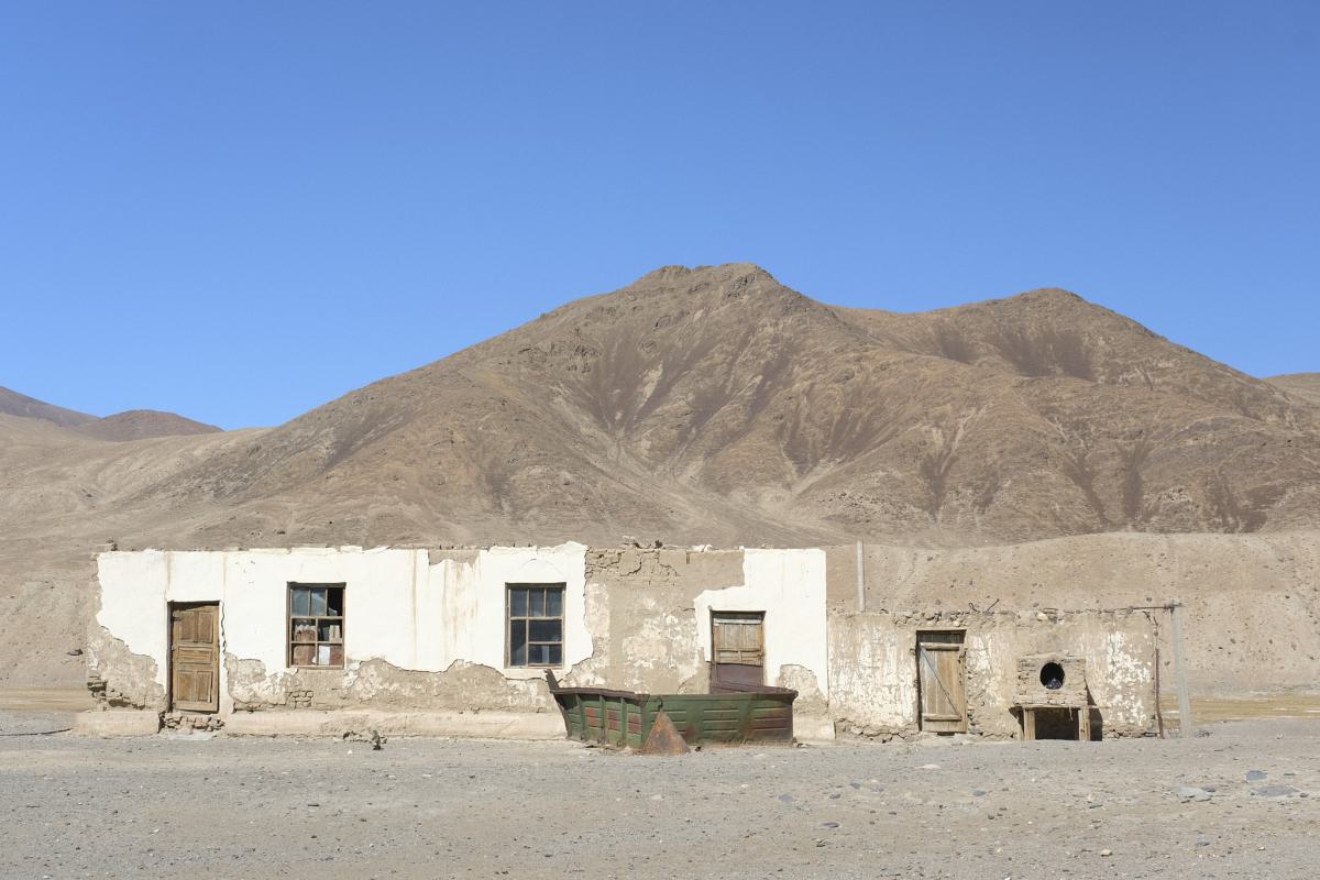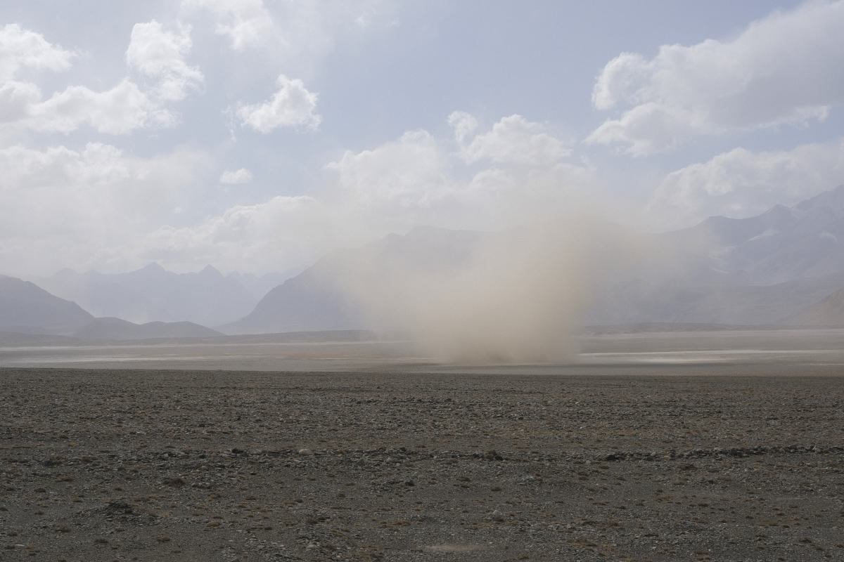 It soon becomes clear that the clouds are indeed dust blown up by the strong winds and pushed against the northern mountains, resulting in sand and dust being blown into the atmosphere. This strange phenomenon made the landscape seem even more eerie and lifeless. Since it’s still early, and we decide that this is not an ideal place to camp, we head towards the Kyrgyz border.