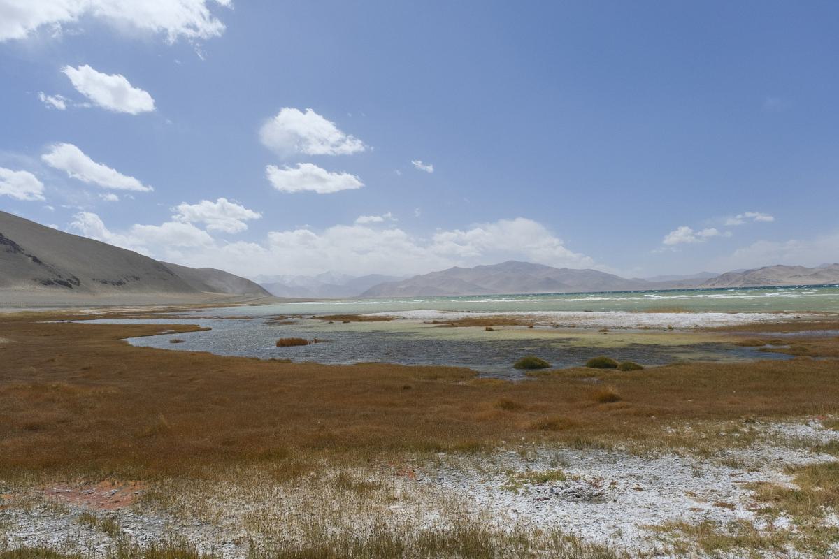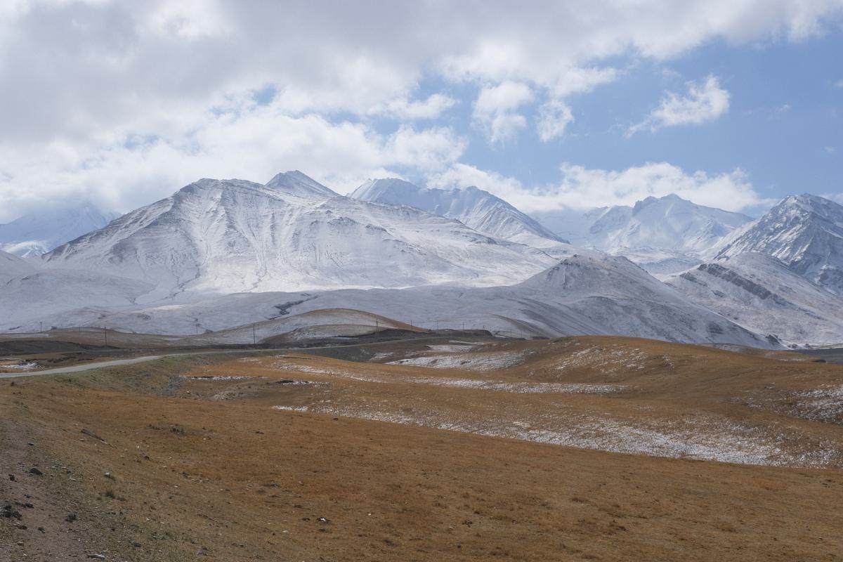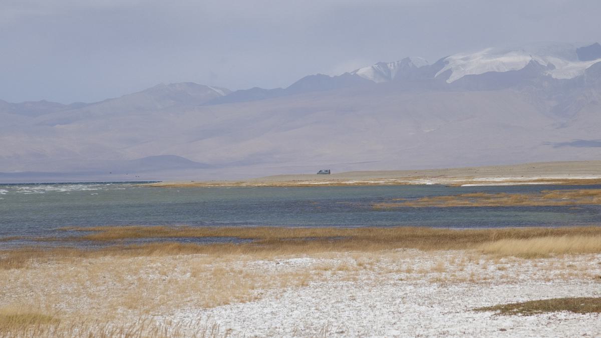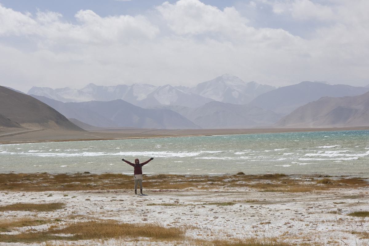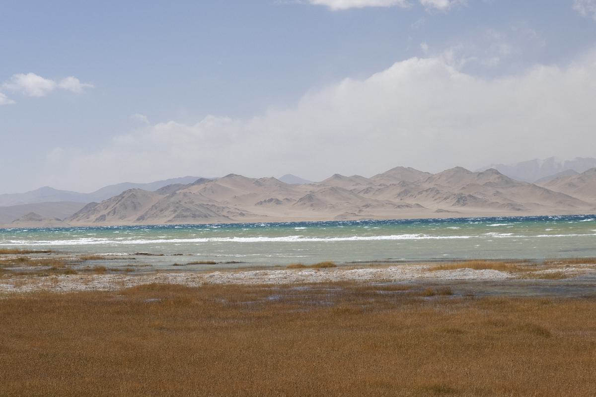 The next morning, after driving for a few hours, we reach Karakul Lake, which is located at an altitude of almost 4,000 metres. It formed roughly 25 million years ago in a meteorite impact crater. The dark blue, almost black surface (hence the name ‘Black Lake’) and the surrounding pastures and marshes make for a fantastic hiking route. We were not only blown away by the beauty of the lake, but also quite literally by the very strong southern winds. We had originally planned to camp here today. However, after lunch, we notice that the weather is changing strangely. We can see yellowish clouds in the distance. Uncertain whether they are storm clouds forming, we decide to leave earlier and head for the next pass.