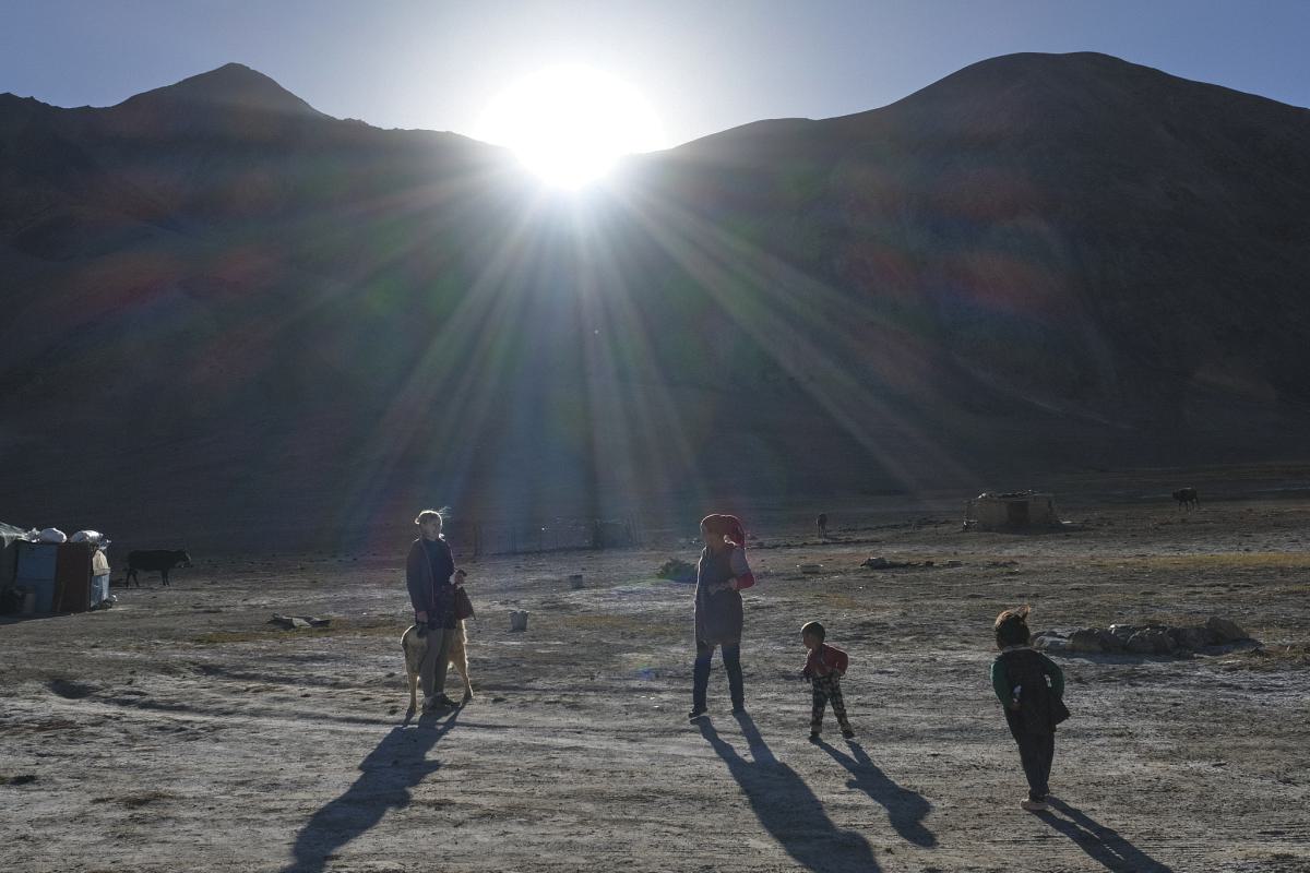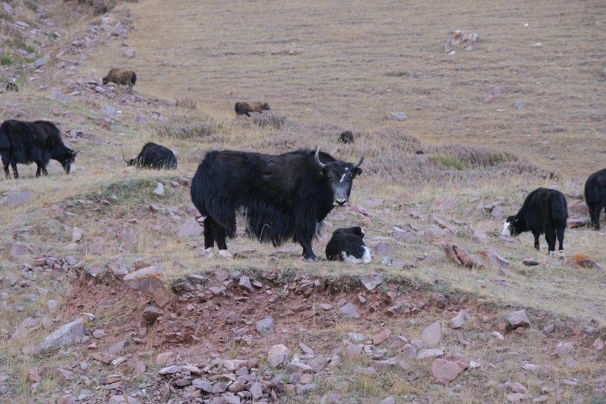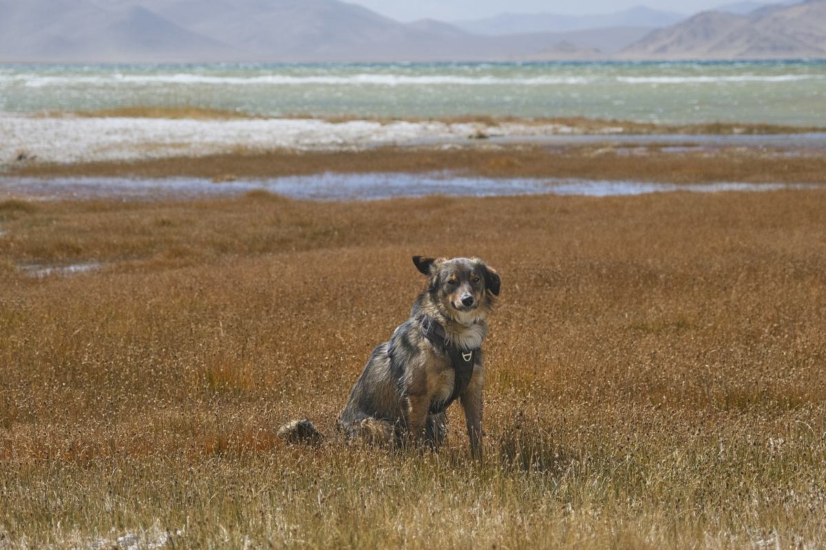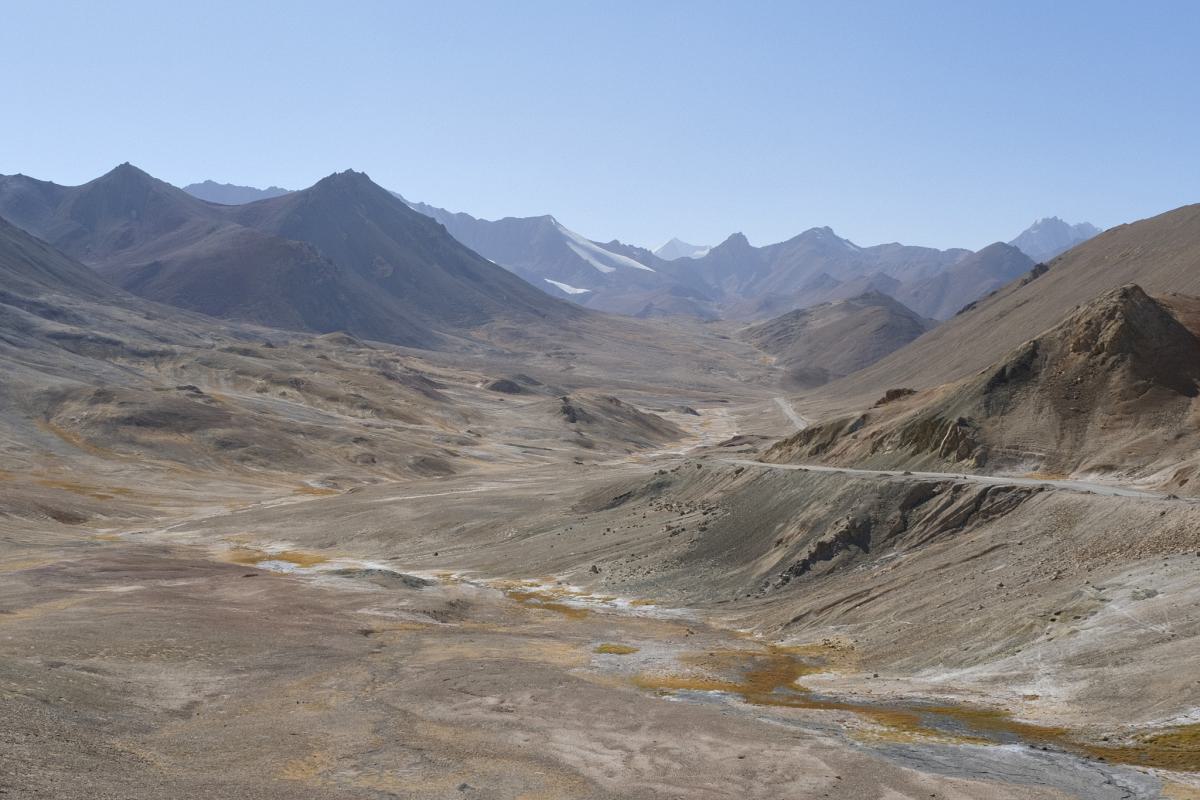 The next morning, after driving for a few hours, we reach Karakul Lake, which is located at an altitude of almost 4,000 metres. It formed roughly 25 million years ago in a meteorite impact crater. The dark blue, almost black surface (hence the name ‘Black Lake’) and the surrounding pastures and marshes make for a fantastic hiking route. We were not only blown away by the beauty of the lake, but also quite literally by the very strong southern winds. We had originally planned to camp here today. However, after lunch, we notice that the weather is changing strangely. We can see yellowish clouds in the distance. Uncertain whether they are storm clouds forming, we decide to leave earlier and head for the next pass.