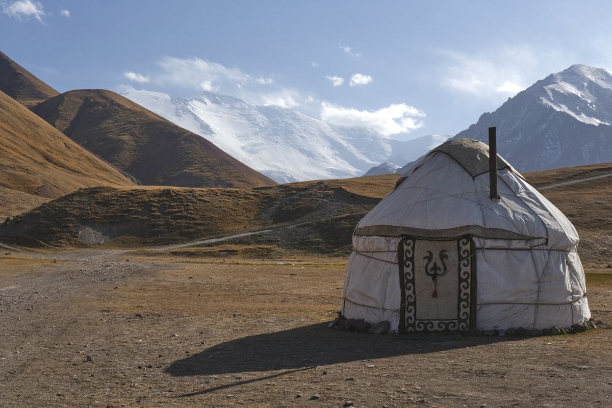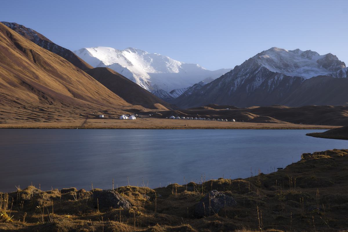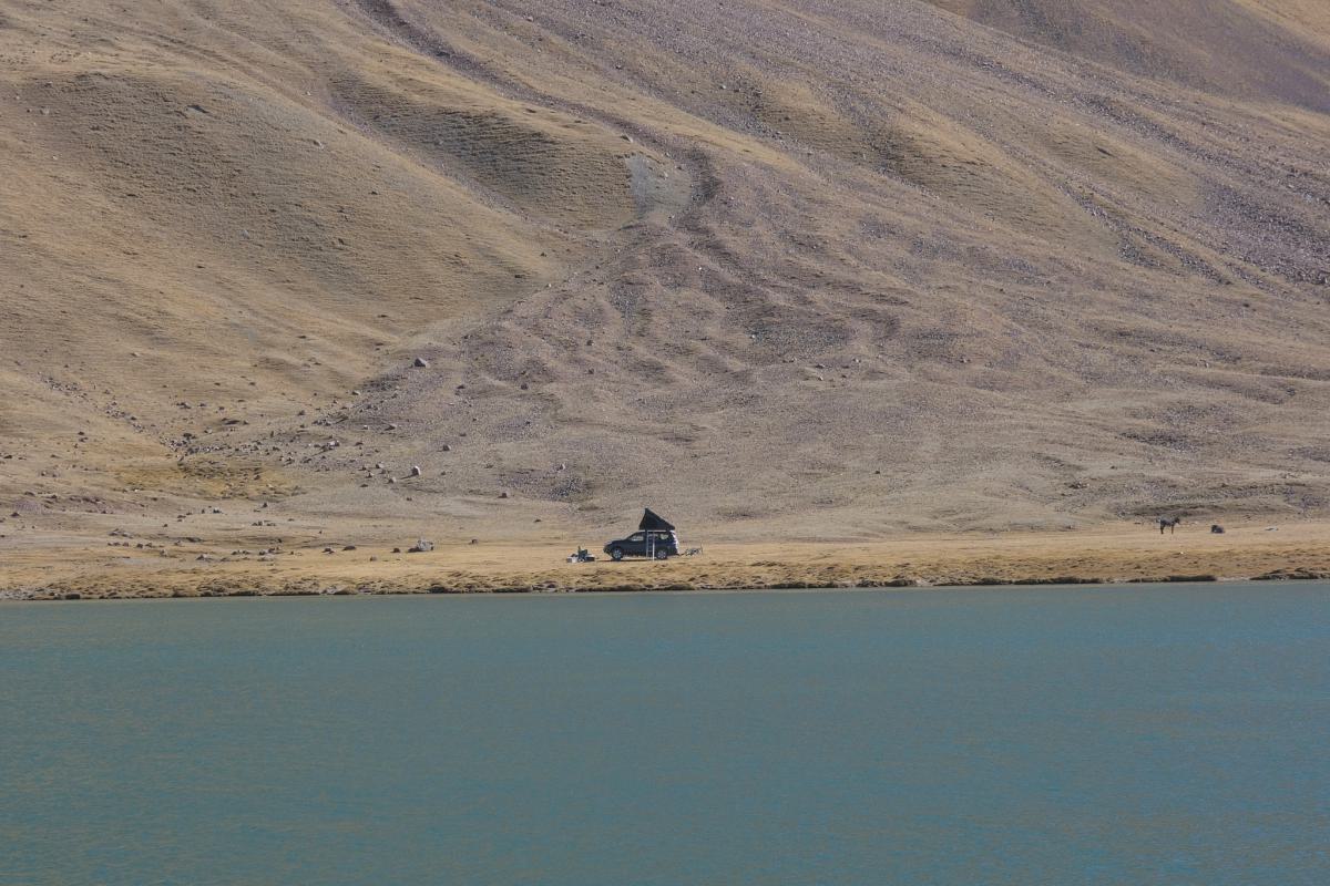 We camp at Lake Tulpar-Kol and hike for a few hours to the base camp of the peak from there. It takes more than 24 hours of hiking to reach the peak, with stops at four more camps along the way. The idea that we’re now at roughly 3,500 m, with the same altitude to go again to reach the top, seems absurd to us. We find the idea of people actually wanting to hike up there even crazier. It’s definitely no walk in the park, as the many memorial plaques for deceased hikers remind us. It was definitely an impressive experience!