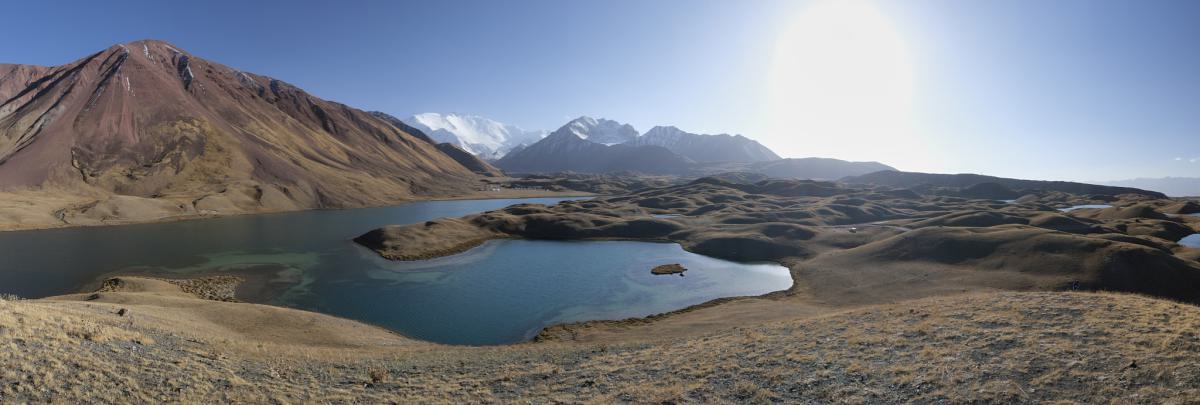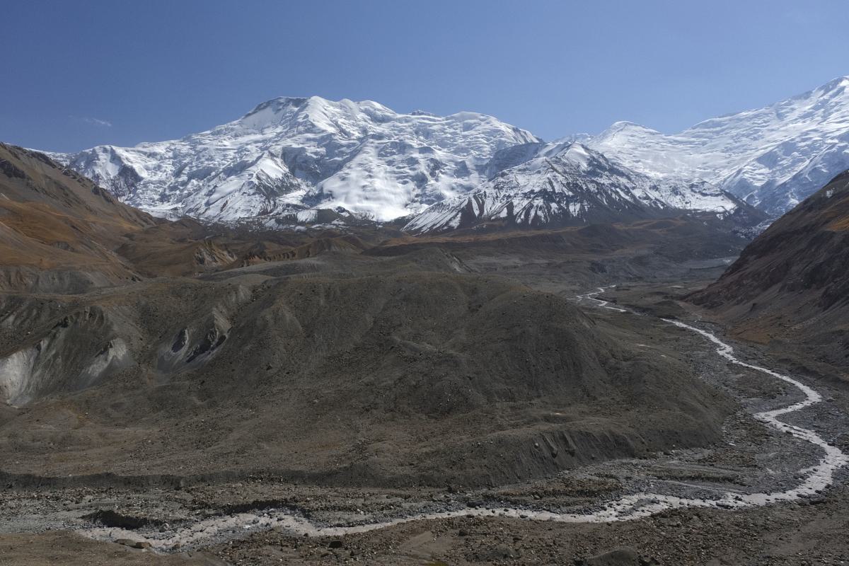 After two stressful weeks travelling on the Pamir Highway, we take a break for a few days in a nice hostel in Sary-Tash, just after the Kyrgyz border, to recharge our batteries. From there, we take a detour off the Pamir Highway to the east to reach the impressive Peak Lenin. At 7,134 metres, it is the fifth-highest peak in the Pamirs. It is also the first mountain with an altitude of over 7,000 metres that we’ve ever seen.