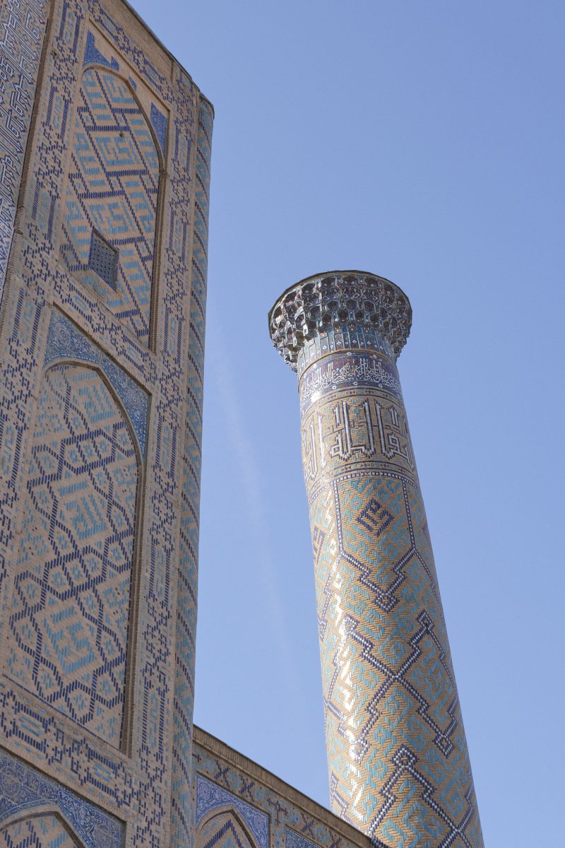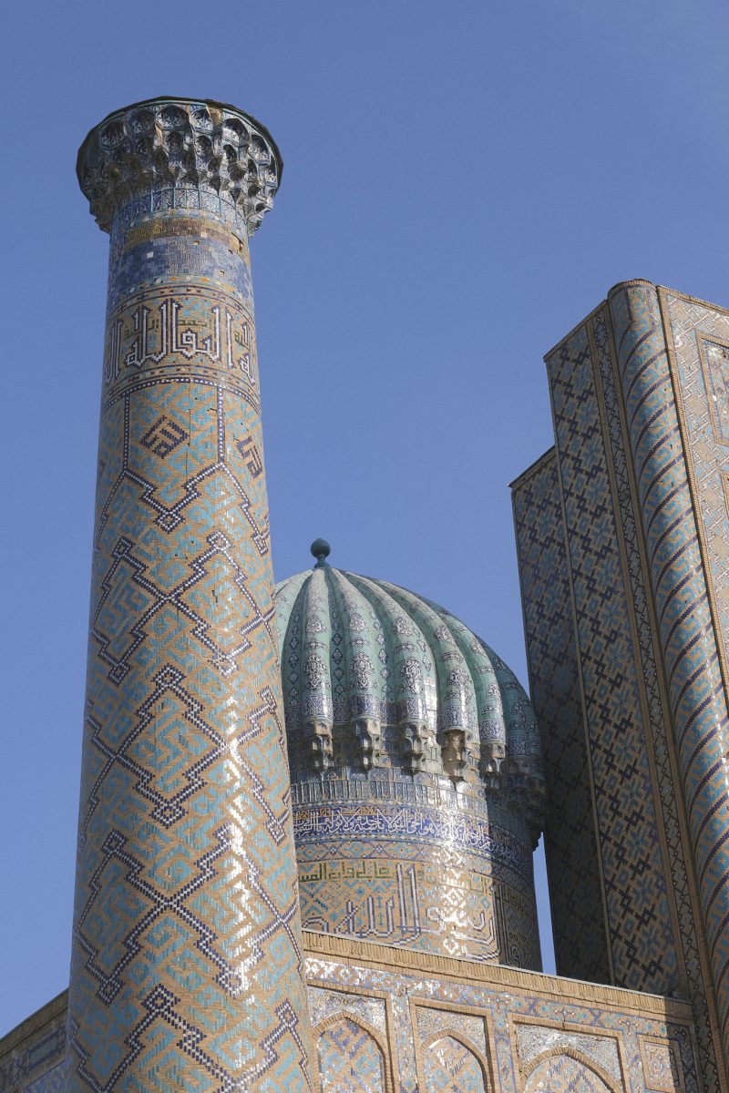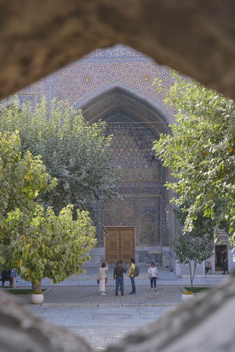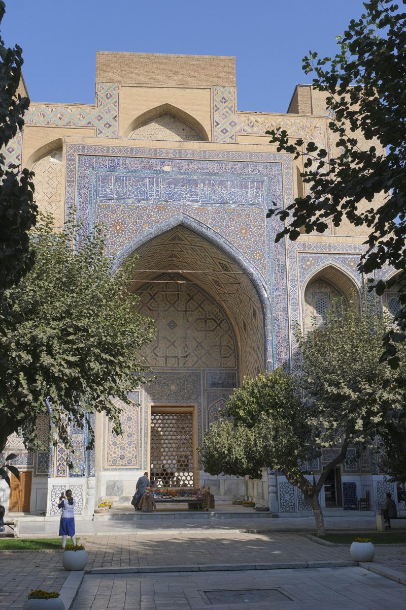 After driving for a few hours east from Bukhara towards Tashkent, we arrive in Samarkand, one of the most important centres of commerce on the ancient Silk Road, after a few hours of crazy Uzbek highway driving. The Sogdians, a merchant people who never had their own state but operated within the territories of other rulers such as the Achaemenids and the Seleucids, once lived here. Sogdia later became part of the Western Turkic Khaganate, but the people’s commercial significance was destroyed by the Muslim conquest of Central Asia. Nevertheless, Samarkand’s status as an important regional centre has endured to this day.