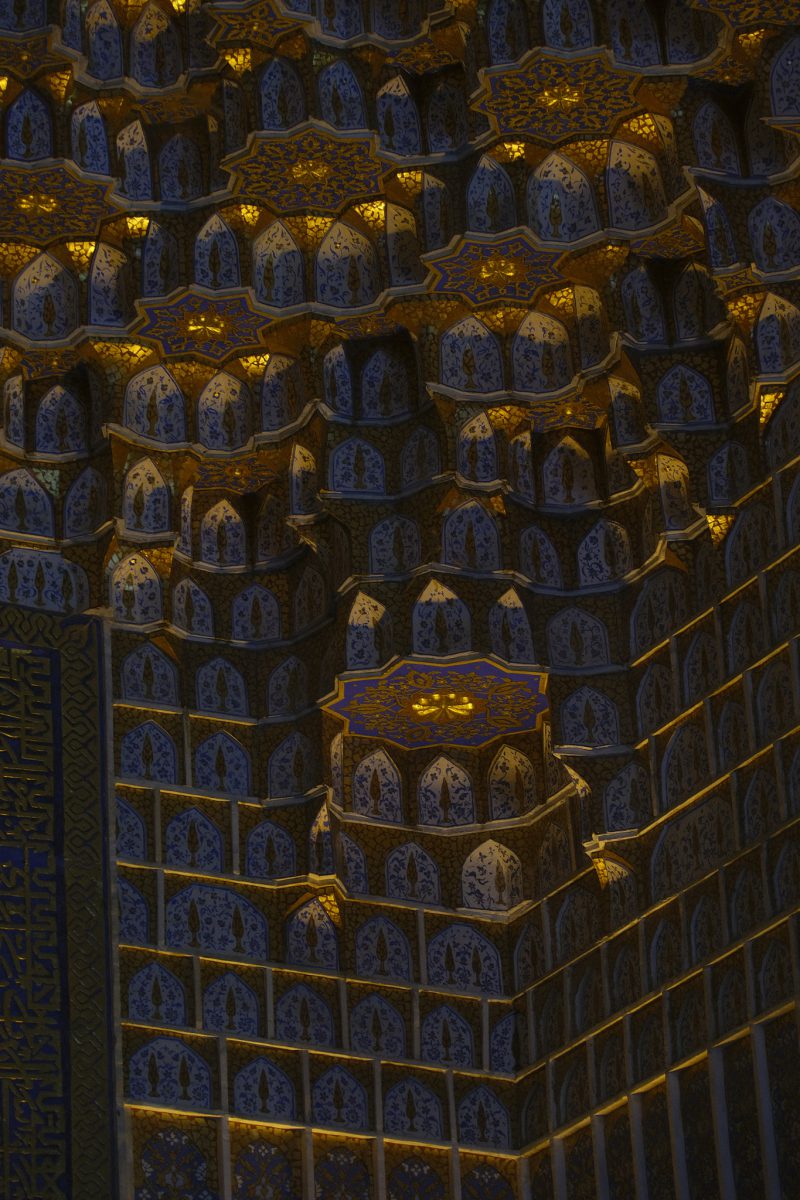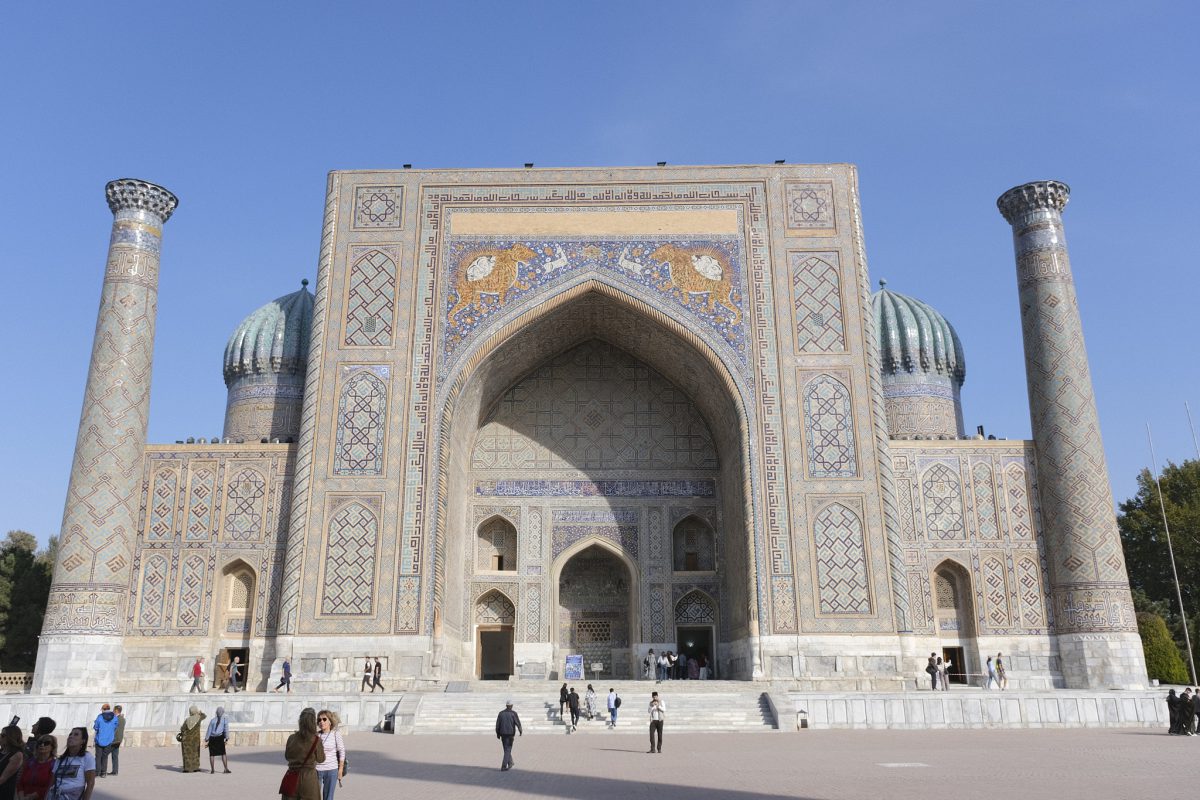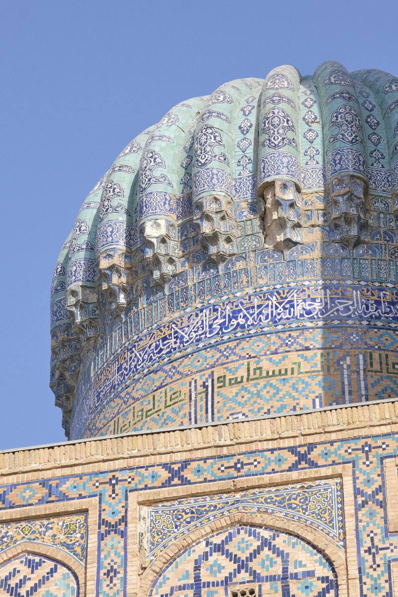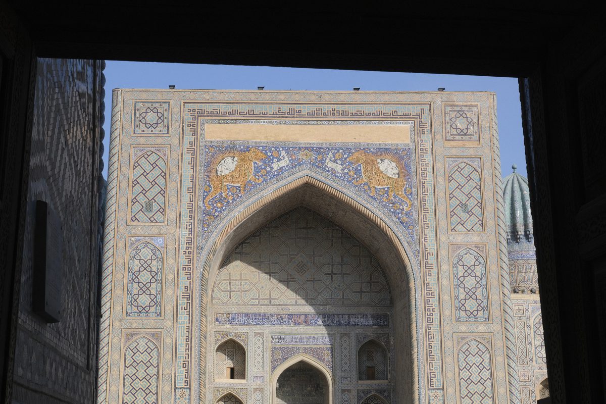 After driving for a few hours east from Bukhara towards Tashkent, we arrive in Samarkand, one of the most important centres of commerce on the ancient Silk Road, after a few hours of crazy Uzbek highway driving. The Sogdians, a merchant people who never had their own state but operated within the territories of other rulers such as the Achaemenids and the Seleucids, once lived here. Sogdia later became part of the Western Turkic Khaganate, but the people’s commercial significance was destroyed by the Muslim conquest of Central Asia. Nevertheless, Samarkand’s status as an important regional centre has endured to this day.