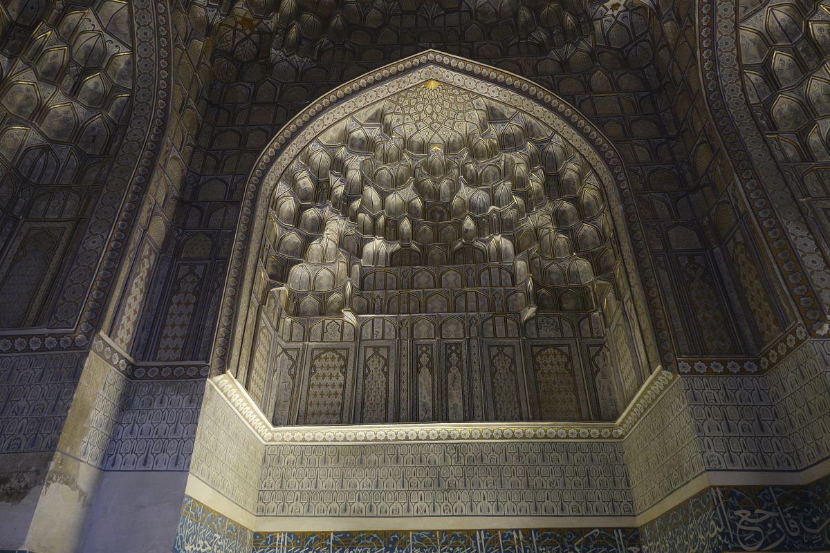 We dedicate the next two days to exploring the remains from the ancient Silk Road era. We visit the Registan Ensemble, a vast spiritual complex comprising three imposing madrasahs and mosques, which were built during the Uzbek Janid and Timurid dynasties. Here, we see the Ulugh Beg Madrasah (Ulugh Beg was the grandson of the great conqueror and king Timur), the Sher-Dor Madrasah (which features an unusual tiger motif on its façade) and the Tilya-Kori (“the gilded”, for obvious reasons) Madrasah.